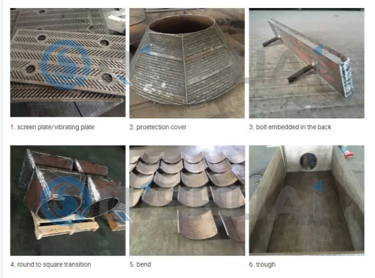 - একক-রোল পেষণকারী প্রধান শ্যাফ্ট একক-রোল পেষণকারী শ্যাফ্ট, স্ল্যাব মেরামত ওভারলে ঢালাই, স্ল্যাগ চুট, ডিস্ট্রিবিউশন ডিস্ক, কম্পনকারী ফিডার লাইনার, স্পন্দিত স্ক্রিন লাইনার, আকরিক হপার, হপার ব্লেড এবং জলের স্ল্যাগ পরিবহনের জন্য পরিধান-প্রতিরোধী উপাদান। তারা কার্যকরভাবে উচ্চ-তাপমাত্রার স্ল্যাগ, আকরিক এবং অন্যান্য উপকরণ থেকে ঘর্ষণ প্রতিরোধ করে, ইস্পাত তৈরির সরঞ্জামগুলিতে ডাউনটাইম হ্রাস করে এবং স্থিতিশীল উত্পাদন কার্যক্রম নিশ্চিত করে।
