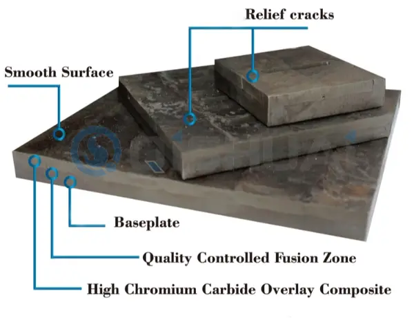 | গুরুতর উপাদান scouring এবং দ্রুত পরিধান | 1. পরিধান-প্রতিরোধী স্তর কঠোরতা (HRC)2. কার্বাইডের ধরন এবং বিতরণ | 1. উচ্চ-কঠিনতা খাদ স্তর (HRC 60+)2. ঘন এবং অভিন্ন পরিধান-প্রতিরোধী গঠন | কাটিং, ঢালাই, বল্টু ফিক্সিং |